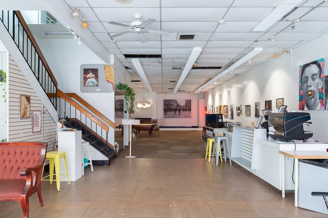 Open studios once a month is giving the public an insight in how the participating Artists work. A cafe, library, and exhibition space is open daily and every Saturday we offer figure drawing, open vinyl night.